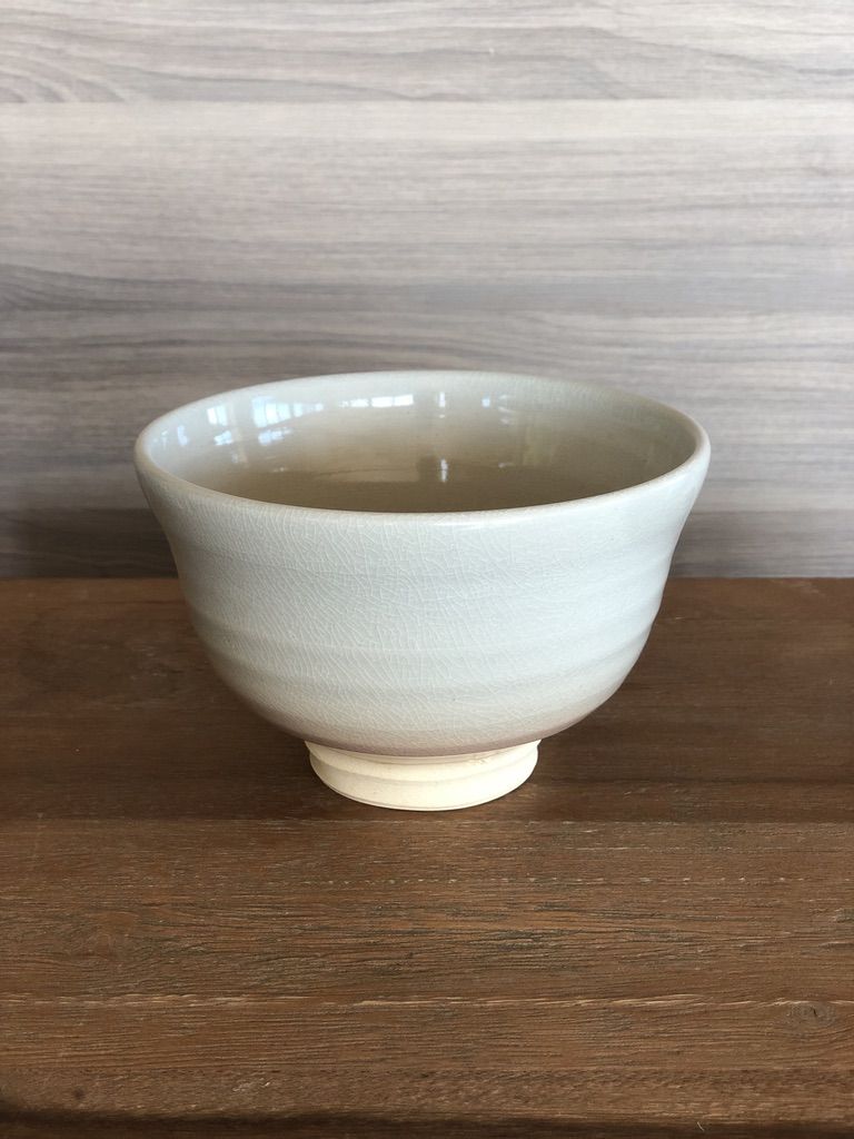 This Hagi-yaki ware matcha tea bowl has been fired in the famous Tinshu Kiln, considered one of the world’s greatest types of earthenware. Amorphous and simple in shape with a feeling of softness and warmth. The origins of Hagi-yaki go back about 400 years. Hairline cracks, known as Kannyu, in the foundation, allow for perfect ventilation and porousness of water. The incrustation of tea into the cracks through use, result in subtle changes in its pattern and color, adding to its charm. Signed by the potter on the bottom of the bowl.